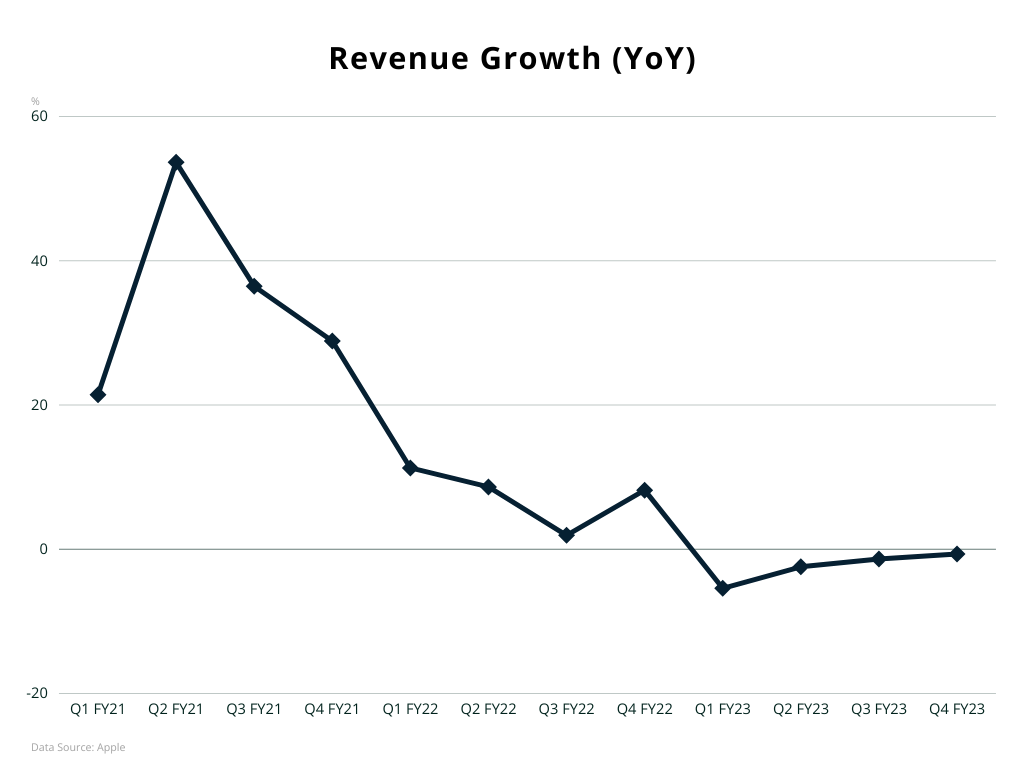 Apple’s Revenues Dipped Again in Q4 FY23 in the Worst Streak in 22 Years