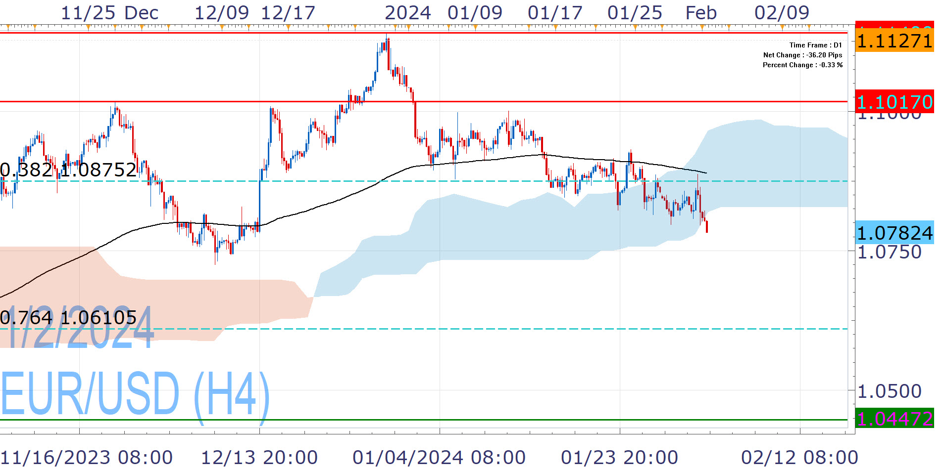 The policy differential is a bit murky at this point, but the Fed has more clearly pointed to a pivot compared to the ECB. Furthermore, markets have not totally priced out a March cut by the fed. These factors can support EUR/USD and give it the chance to retake the EMA200 (1.0890). This could pause the downside momentum, but the common currency does not inspire confidence at this point for sustained strength towards and beyond 1.1017 .