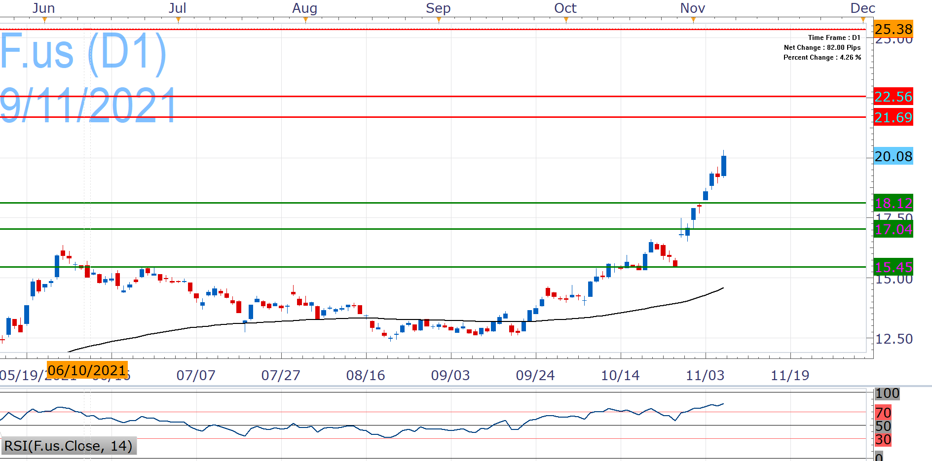 The share price of Ford Motor Company hit the $20 mark for the first time in more than 20 years, with F.us registering a staggering nearly 130% year-to-date rally, as investors appear to like its recent turnaround plan under the new CEO.