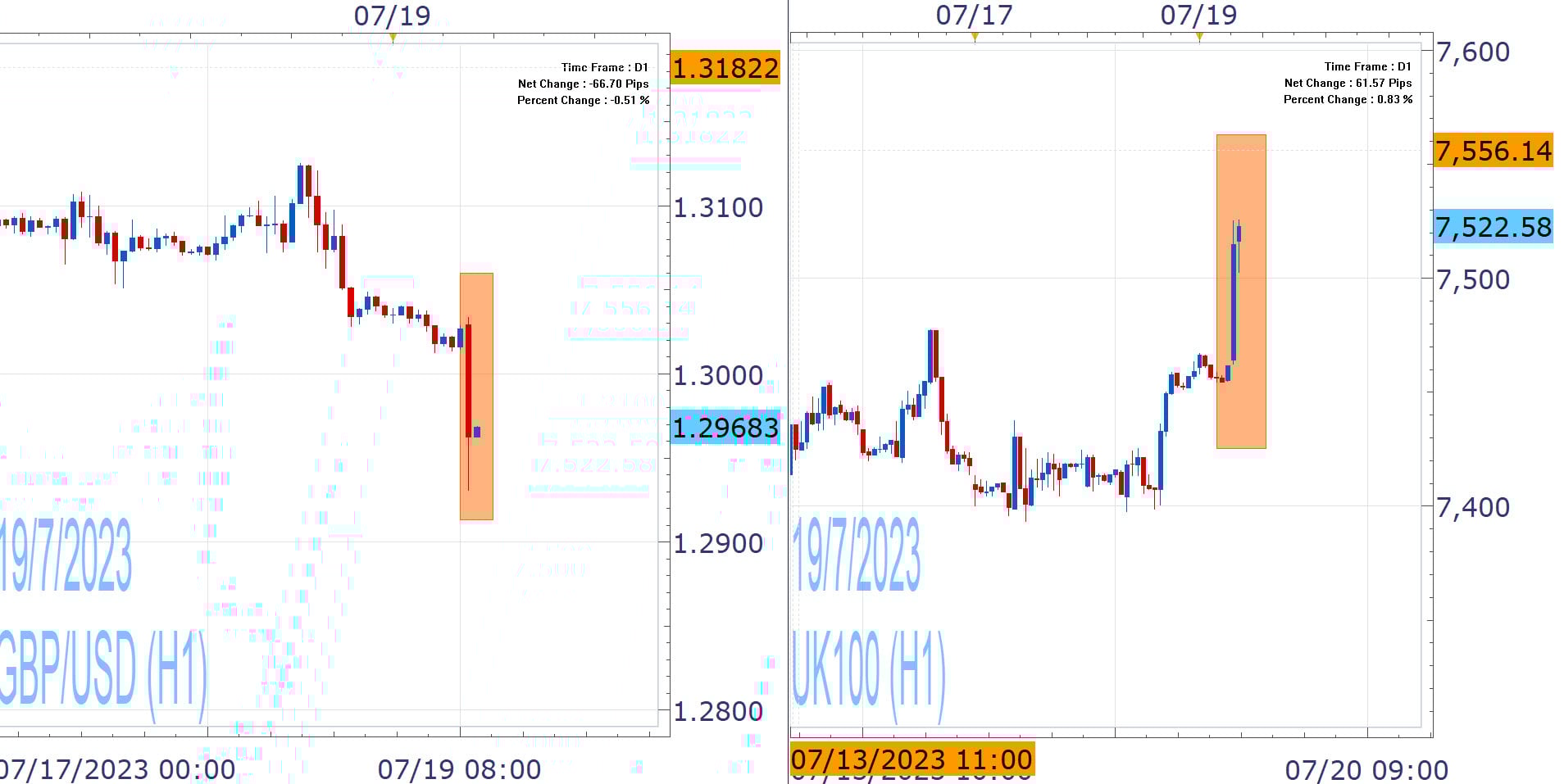 Inflation in the UK decelerated in June as today data showed, coming in softer than expected, after repeated upside surprises. Headline CPI cooled substantially to 7.9% y/y, from 8.7% prior, in the smallest increase in over a year. Core CPI that excludes food, energy, alcohol and tobacco prices eased to 6.9%, following May's thirty-one year highs (7.1%)