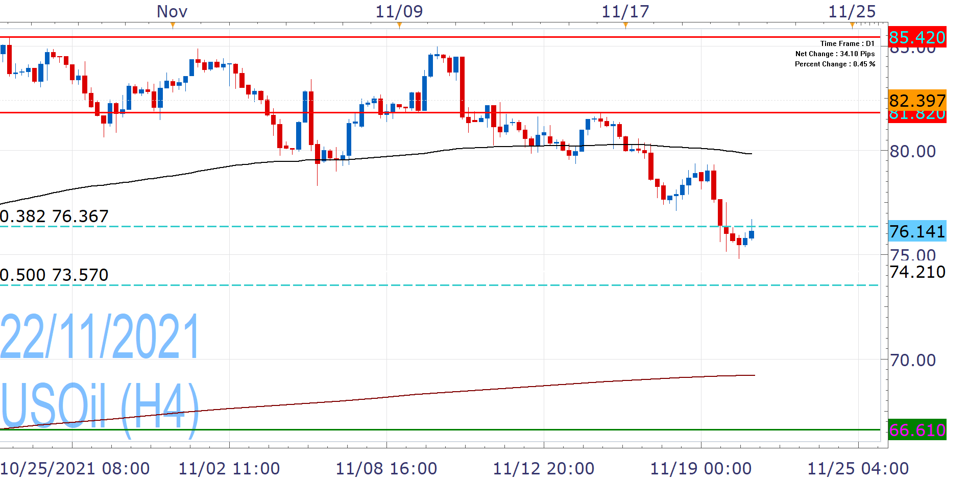 Oil finds support today as sentiment shows signs of improvement and we can see further rebound, but it does not seem ready to challenge the EMA200 ($80.00), above which it will return in the driver's seat.