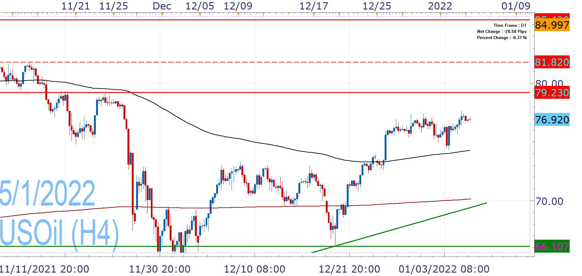 USOIL rallied more than 50% in 2021, with just three negative months, the worst of which was November. In October, it had registered its highest price since late 2014 (85.42).