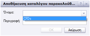 Για να επεξεργαστείτε έναν Κατάλογο Παρακολούθησης, μπορείτε πρώτα να προσθέσετε ή να αφαιρέσετε τα σύμβολα της προτίμησής σας. Αφού το κάνετε αυτό, μπορείτε να αποθηκεύσετε τον ανανεωμένο Κατάλογο Παρακολούθησης, επιλέγοντας Προβολή -> Κατάλογοι Παρακολούθησης -> Αποθήκευση Καταλόγου Παρακολούθησης και να χρησιμοποιήσετε το ίδιο όνομα με το προηγούμενο, έτσι ώστε να αντικαταστήσετε την παλιότερη αποθήκευση. Αυτό θα ενημερώσει τον Κατάλογο Παρακολούθησης με τα σύμβολα που προσθέσατε ή αφαιρέσατε.