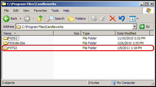 - Click “Start” -> “Computer” -> “C Drive” (Local Disk or Hard Drive) -> “Program files (x86)” -> “Candleworks” -> “FXTS2”