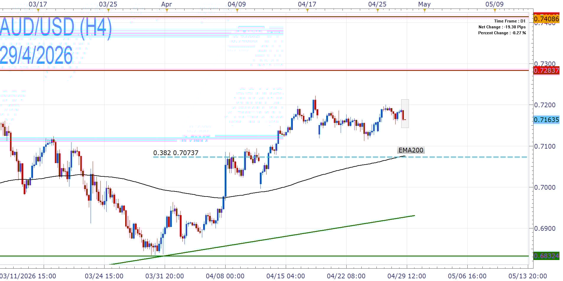 However, holding above the EMA200 and the 38.2% Fibonacci level would reaffirm the bullish outlook and the case for new multi-year highs above 0.7284. The RBA's lead in tightening creates a favourable monetary policy differential that could continue to support the Aussie, though any dovish surprise next week could weigh. Markets are also focusing on tonight's Fed decision for the pair's next move.