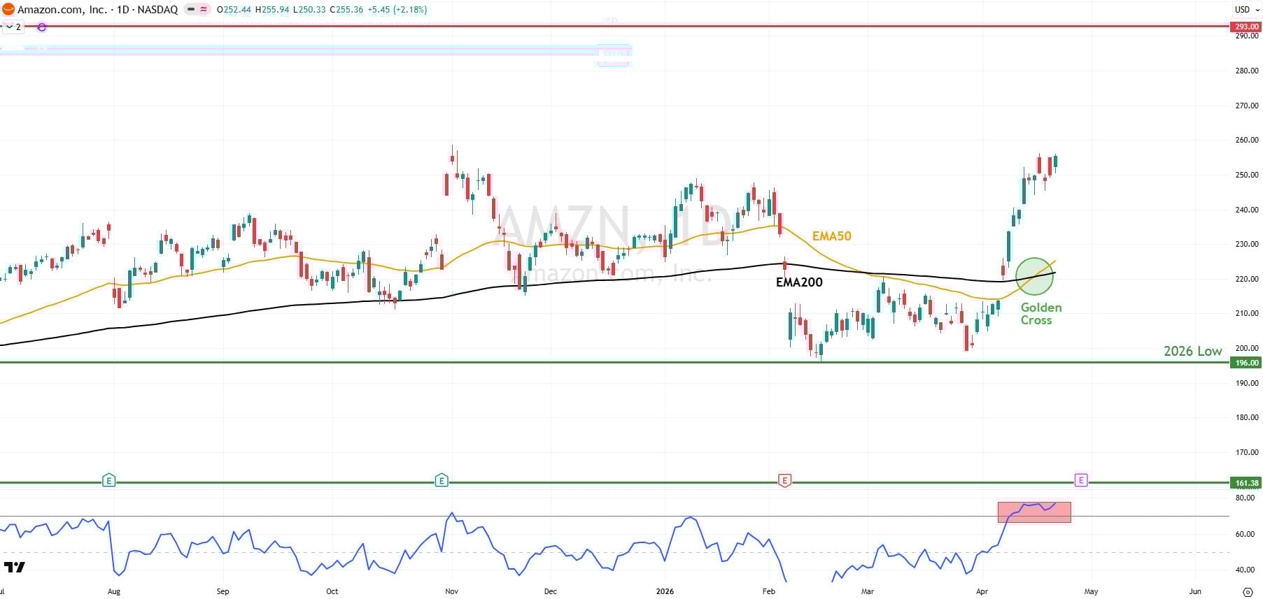 Amazon.com is a top Magnificent Seven performer this year, thanks to this month's surge. With the formation of a Golden Cross, it is well positioned to extend its gains as it progresses on the AI front. But the last disappointment acts as a cautionary tale and any new miss would push the stock lower. The advance also looks technically stretched as indicated by the RSI, creating scope for such moves.