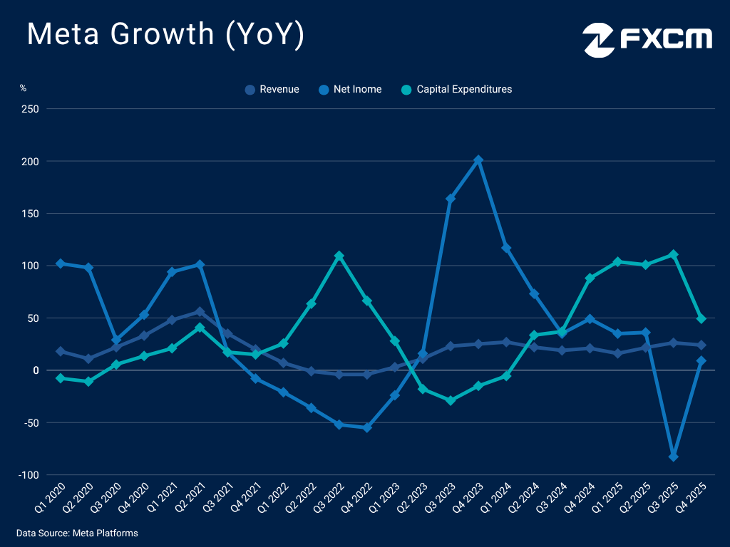 Meta's top and bottom lines picked up in the fourth quarter and management expects revenues to rise 23.8%-30.7% y/y in Q1, marking a substantial growth boost. This could in turn keep investors calm regarding the massive AI investments. The company targets capital expenditures of $115-135 billion in 2026, representing an increase of at least 59.2% from last year.