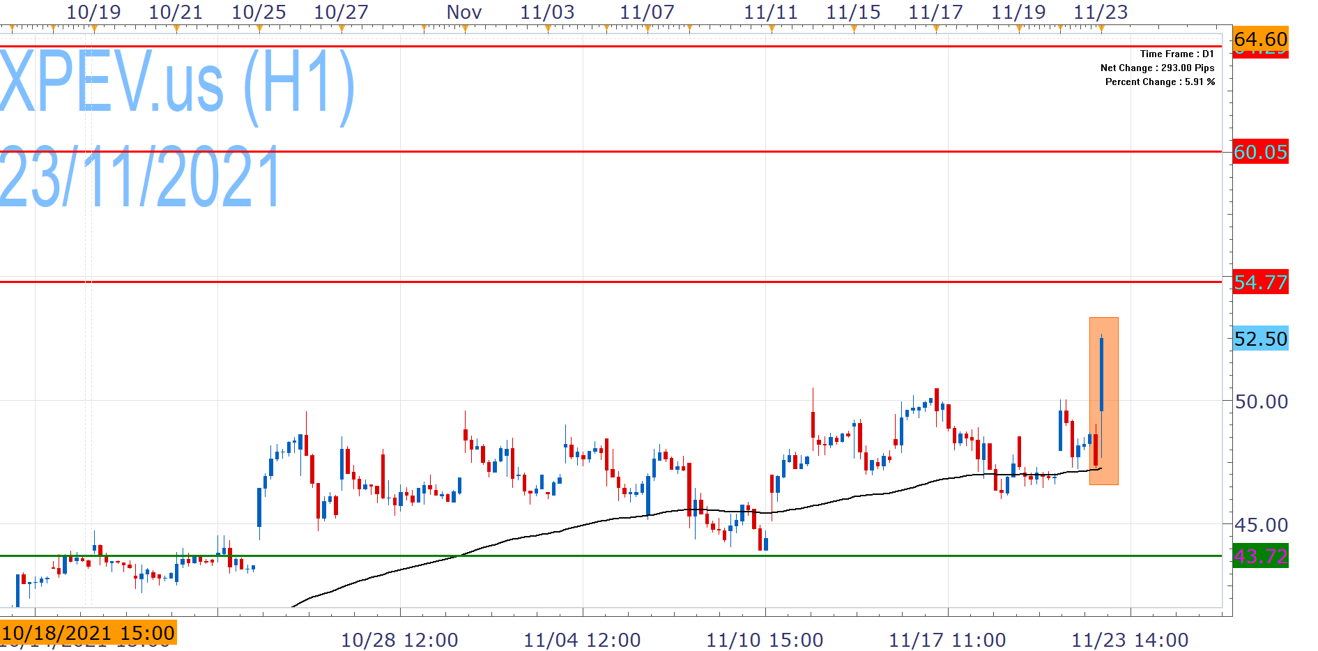 XPEV.us opens higher after the strong results and breaks above 50.00, which had limited the upside since late October. Today's rise brings the stock ot levels not seen since January and now has the ability to take 54.77 out and look towards 60.00.
