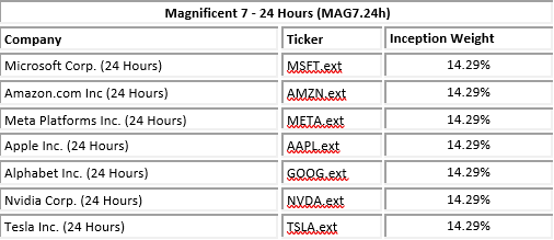 De MAG7.24h-mand is een uniek product dat bestaat uit Amerikaanse aandelen die buiten de reguliere handelsuren worden verhandeld, samengevoegd tot één instrument.