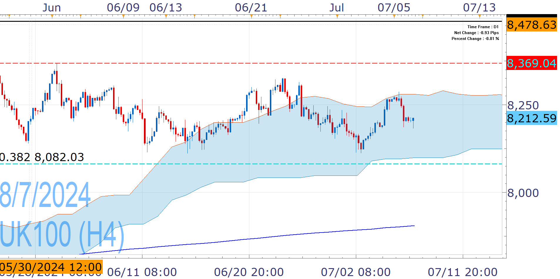 However, UK has already defended this level and above it, bulls are in their driver' seat with the ability to push for new all-time highs (8,488). The UK economy exited its brief recession, inflation has decelerated substantially and the central bank has pointed to a less restrictive stance ahead, despite uncertainty around the timing of the first rate cut.
