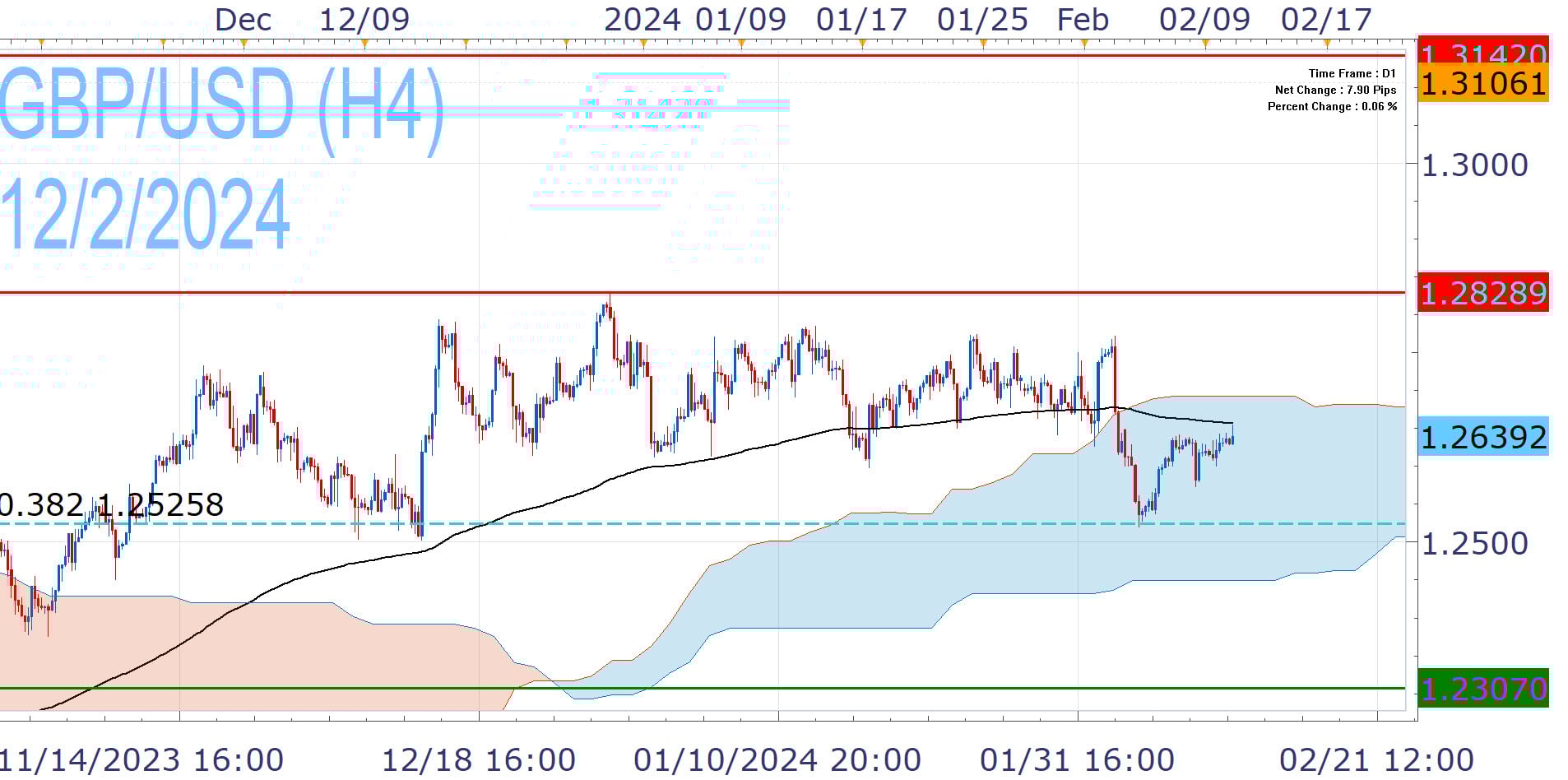 The recent strong labor report and the Fed's conservative stance around lowering rates, have moderated aggressive market bets, working against the pair. As a result, GBP/USD closed last week below the EMA200 (black line) and into the daily Ichimoku cloud. This creates risk for sub-38.2% Fibonacci fall (1.2525-1.2499), but strong catalyst would be needed for that, as the immediate downside appears well-protected.