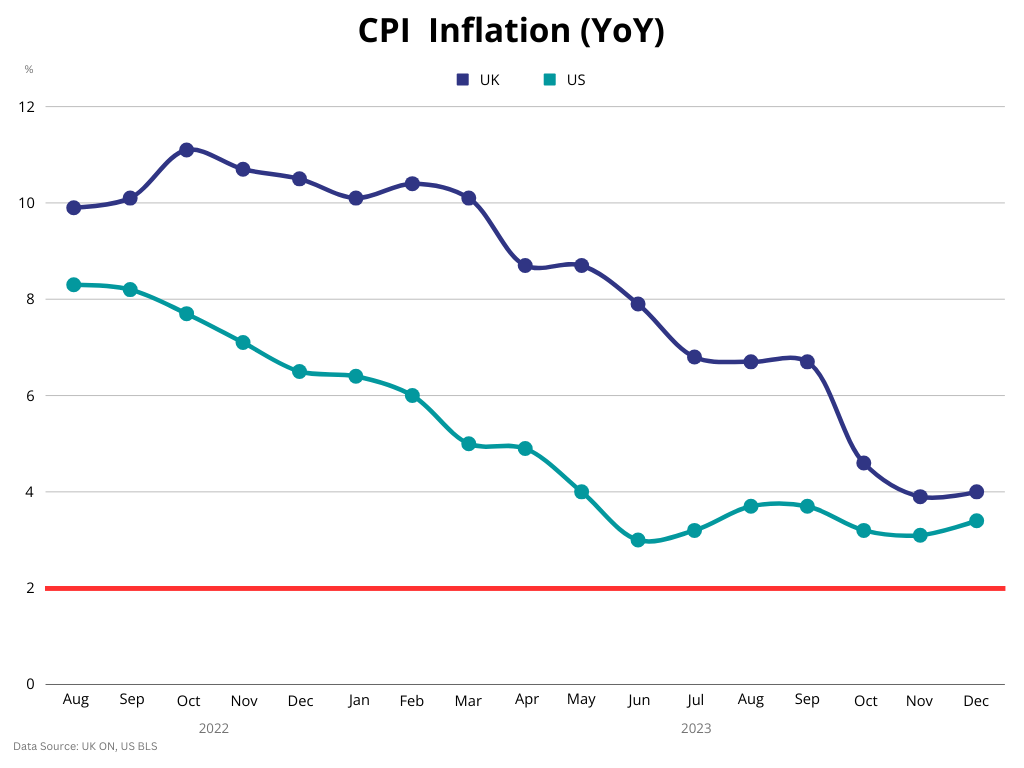 Price pressures have moderated substantially in the US and Friday's revision confirmed the disinflationary trend, but recent data have also shown persistence. UK inflation has decelerated sharply over the past several months, but the last print showed an uptick and at 4%, it remains far from the central bank's 2% target.