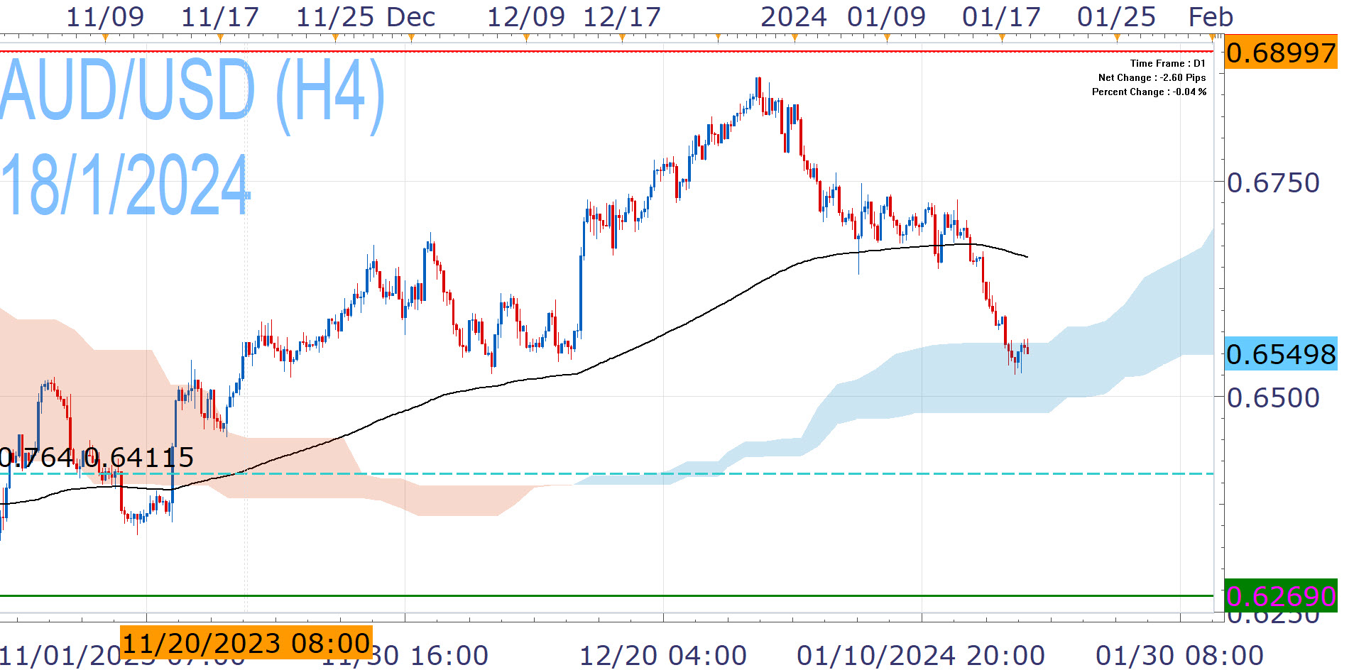 This week's risk aversion on escalating hostilities in the Middle East and the rethink around the Fed's rate cut prospects have sent AUD/USD to a steep decline. Today's Australian data don't help the Aussie and make it vulnerable to 0.6411, although 0.6269 is distant.