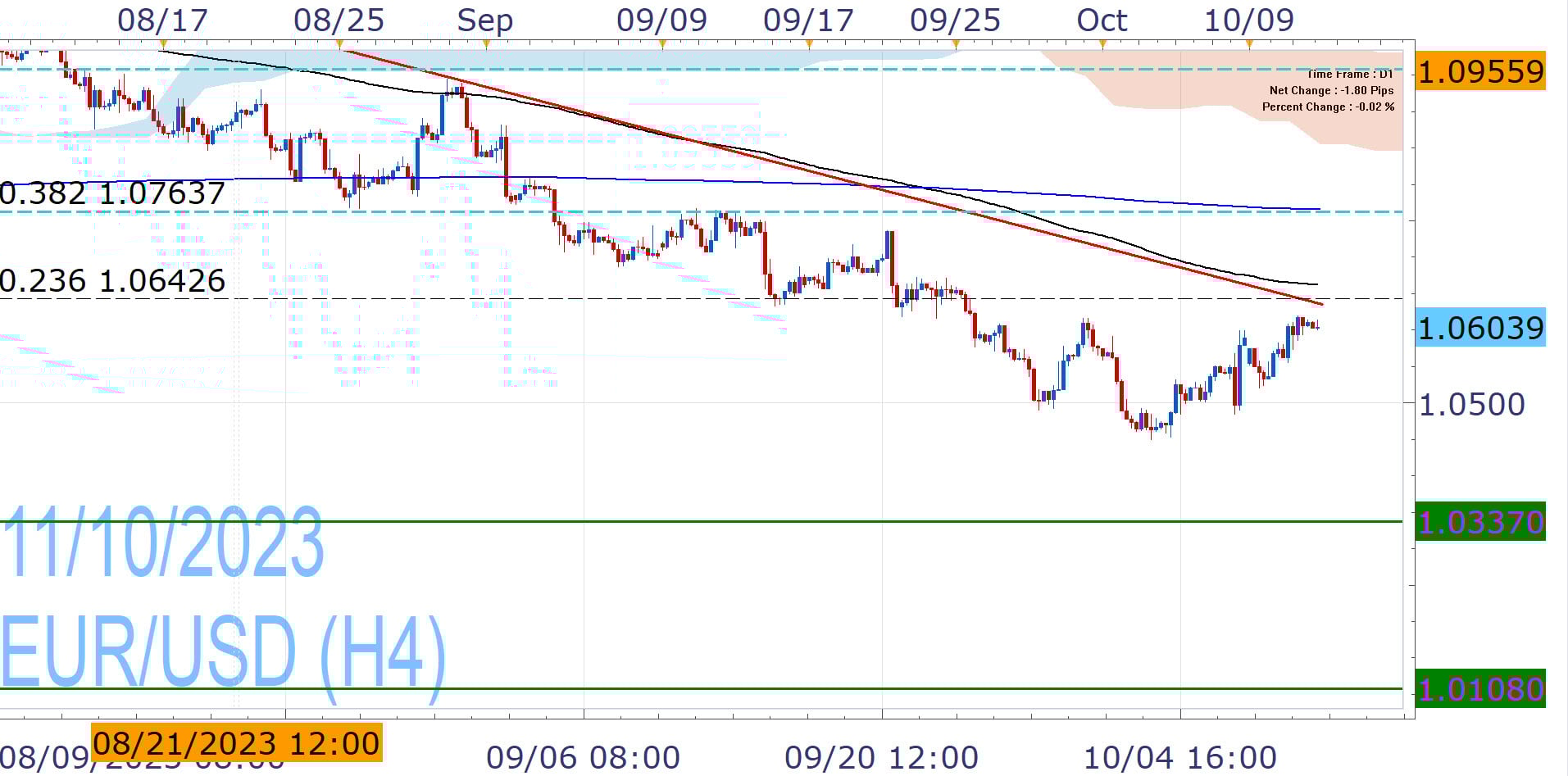 However, the flight to safety from the Middle East conflict is putting downward pressure on yields this week. Furthermore, inflation is still high (and these events can sustain it), the labor market hot and the economy strong, keeping pressure for further monetary tightening. The IMF upgraded its GDP projections for the US on Tuesday, to 2.1% for this year and to 1.5% for 2024 [3]. Officials had adopted a hawkish stance last month, as they maintained their 5.6% medial terminal rate projection, which implies one more hike this year.