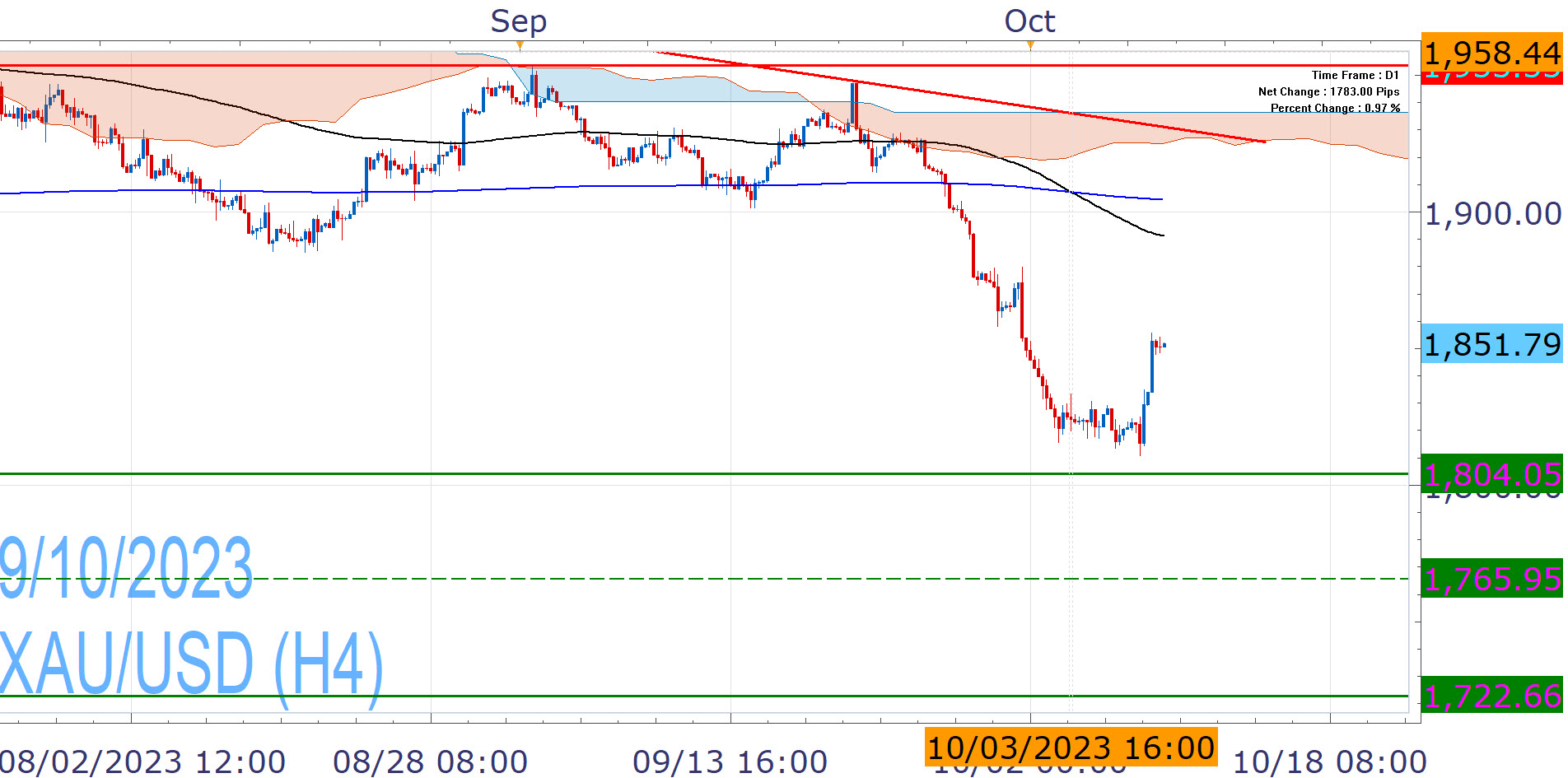 Palestinian group Hamas launched a surprise and deadly attack on Israel, which retaliated with operation Swords of Iron. The flare up in the Middle East conflict boosts oil prices and sends gold higher as well, as the latter attracts risk-off flows.