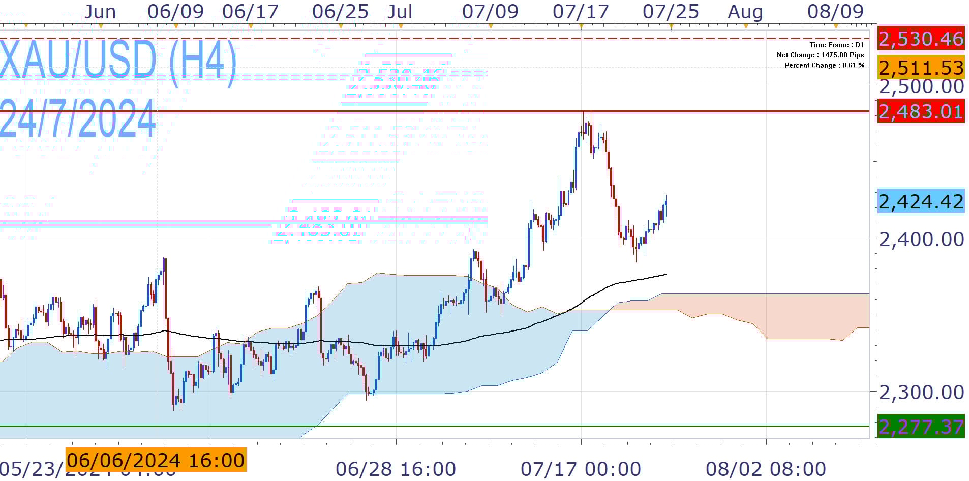 After a pullback from last week's record peak, Gold regains its footing above key technical levels and has the opportunity to set new highs (2,483). The greenback is weighed by bolstered expectations for multiple rate cuts by the Fed, following the resumption of the disinflation trend and remarks by Chair Powell and other officials that seem to lay the groundwork for a September pivot. Other supportive factors include central bank buying and safe heaven flows from renewed Sino-Western jitters and US election uncertainty.