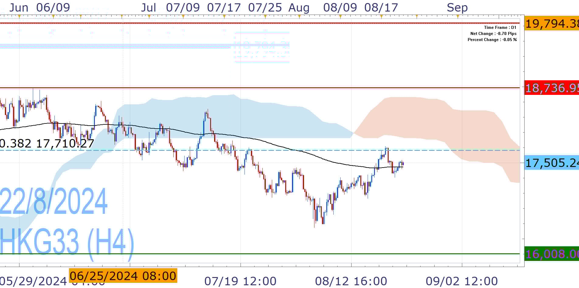 From a technical standpoint, the upside is unfriendly. The falling daily Ichimoku cloud can contain stronger recovery efforts and HKG33 already faces pushback at the pivotal 38.2% Fibonacci. Below it, bearish bias is intact and there is scope for lower lows towards the 16K mark.