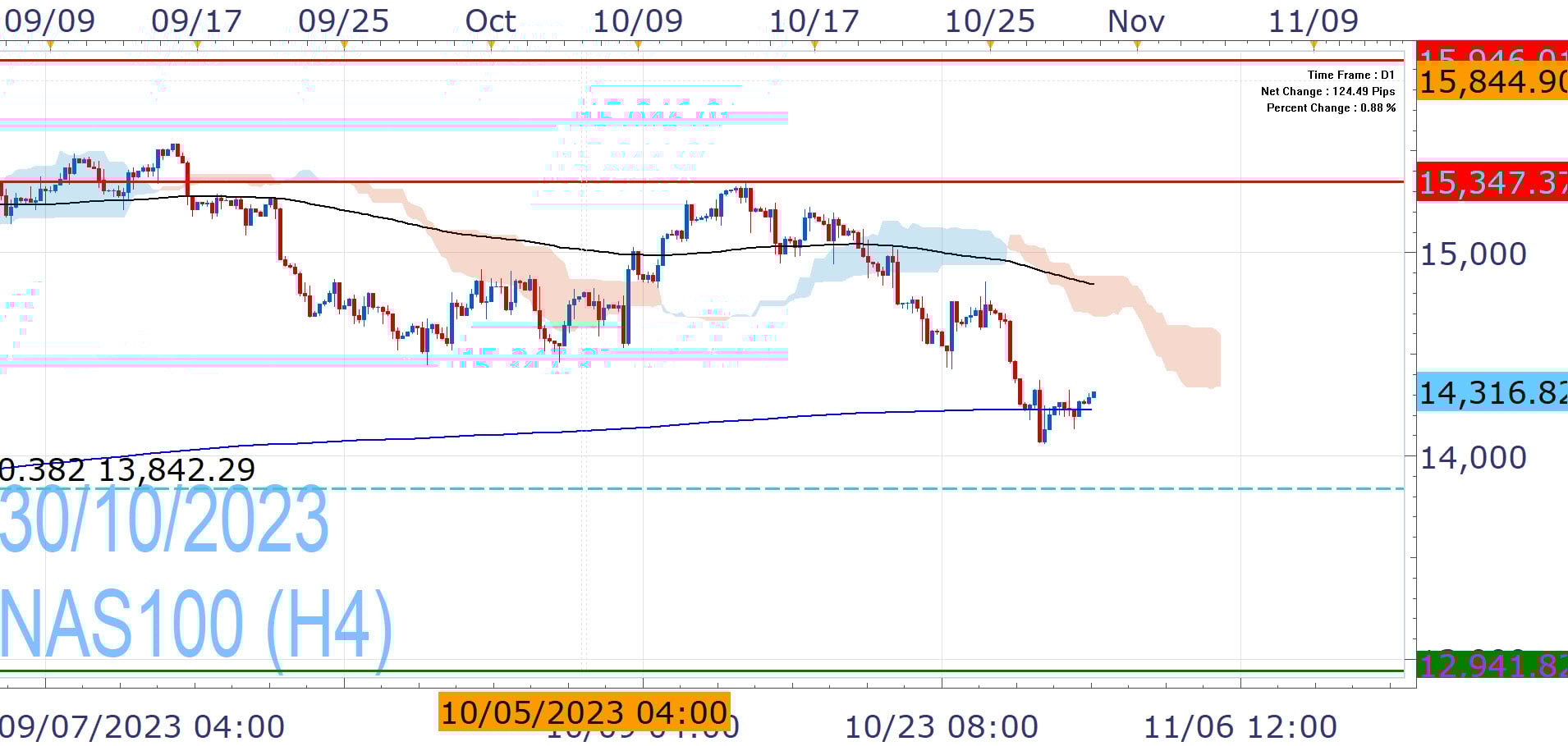 Markets now await the Fed's pivotal rate decision on Wednesday, which will likely determine the trajectory of NAS100. Markets expect a hold and believe that rates have already peaked, while there were some dovish remarks recently, but the strong economy and tight labor market keep more tightening in play. Any insights on the next steps will be the key focal point.