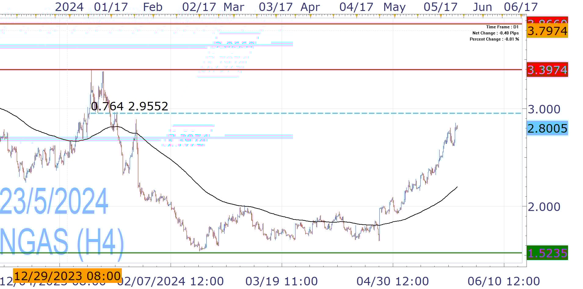 The improving supply-demand equilibrium has fueled a two-month-relief rally, following the slump of the first quarter. NGAS runs its best month in nearly two-years and has moved to profits for the year, which brings the 2024 highs in the spotlight (3.397) and the favorable fundamentals create scope for sustained strength.