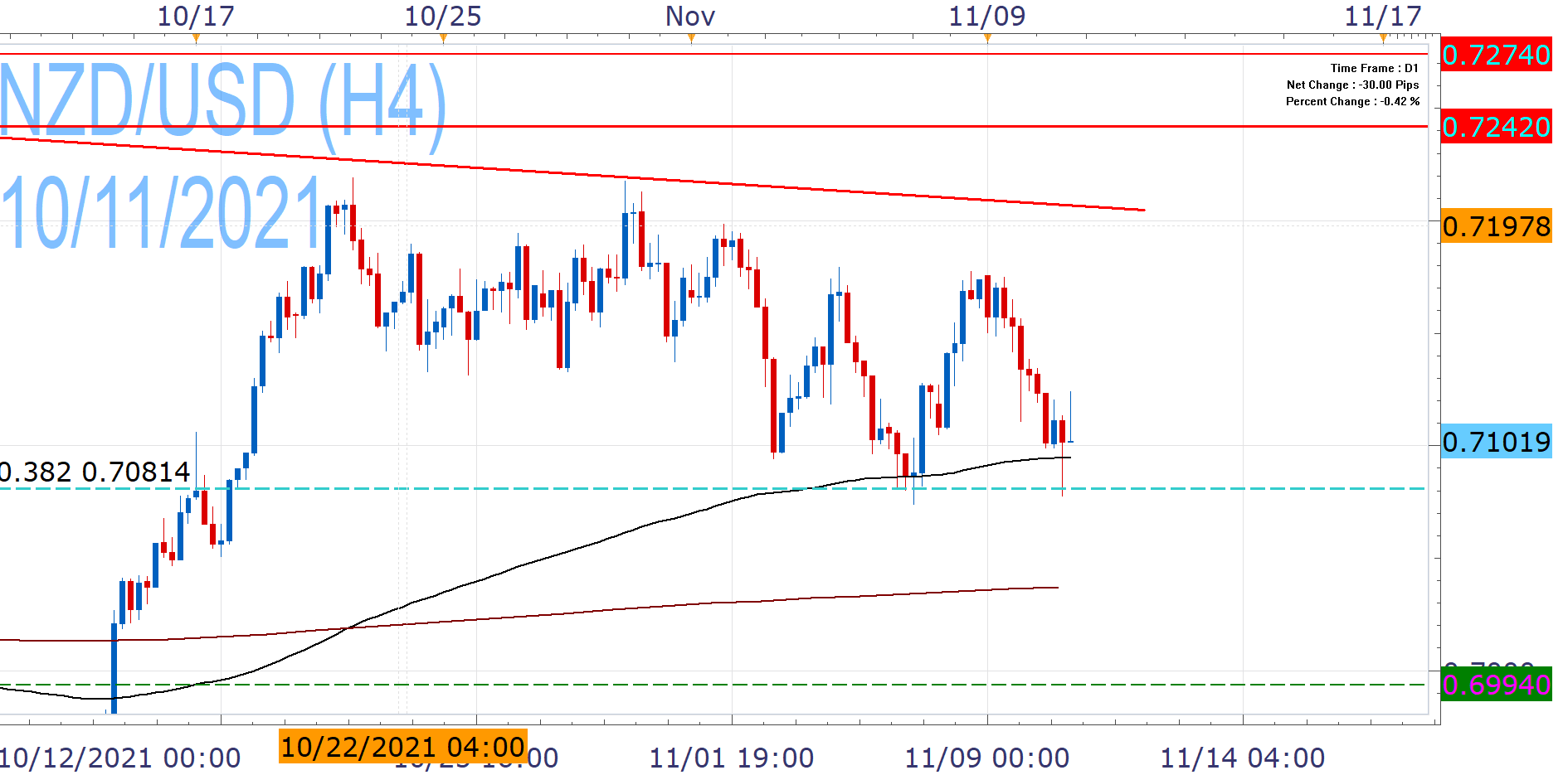 More to it, the NZD is better positioned against the greenback, compared to other major currencies, as the Reserve Bank of New Zealand is far ahead in monetary policy normalization. Last month it hiked rates by 25 bps (to 0.5%) for the first time in seven years, with its next meeting approaching on November 24th. The Fed is further back and about to start tapering its QE.