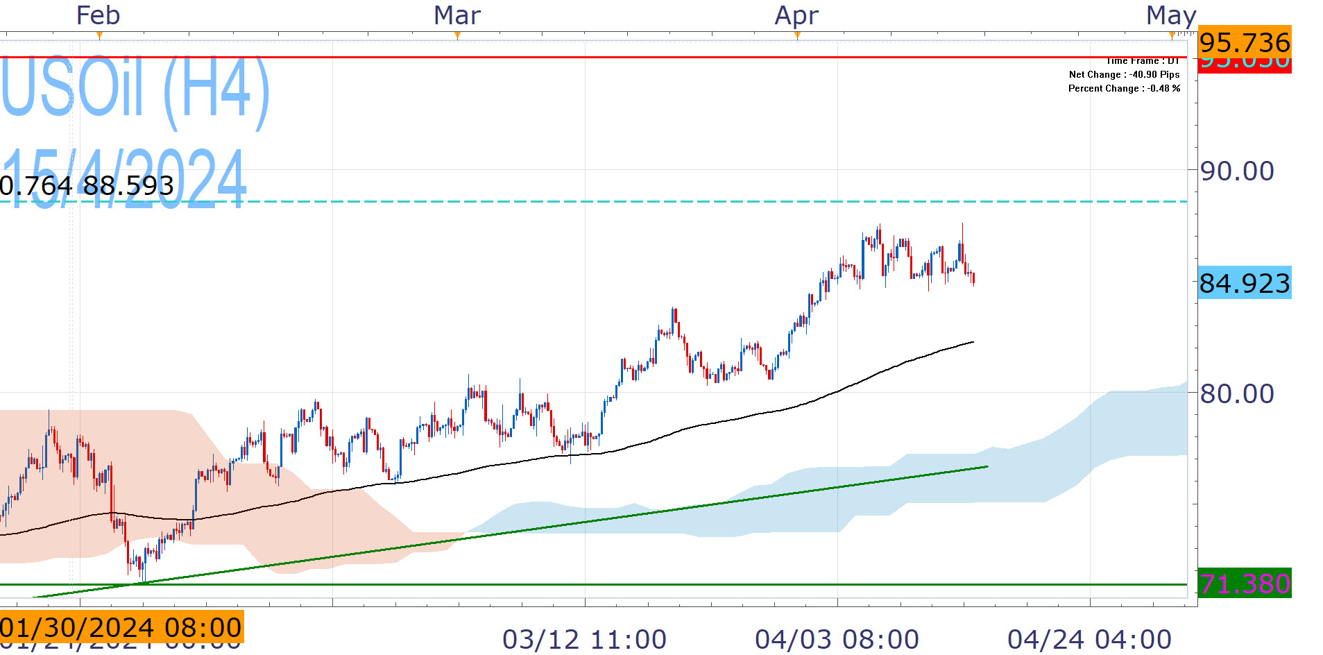 Despite the attack, markets keep their cool and in fact, USOil faces pressure today. Iran's permanent mission said the mater "can be deemed concluded", implying an one-off strike [4]. At the same time, US President Biden spoke of "ironclad" support to Israel [5], but keeps a low profile. He has every reason to want to keep this contained, including domestic considerations. A spike in oil prices would push the already stubborn US inflation higher, in what is an election year. OPEC+ itself may not want oil prices to go to high either, as this would risk demand destruction.