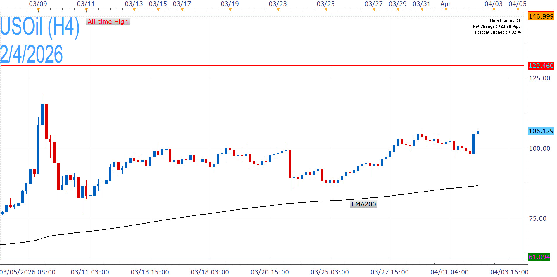 USOil rises again today, maintaining its bullish bias, holding above $100 per barrel and on track for new highs. Still, it remains vulnerable to a move below the EMA200 that would negate the upside momentum.