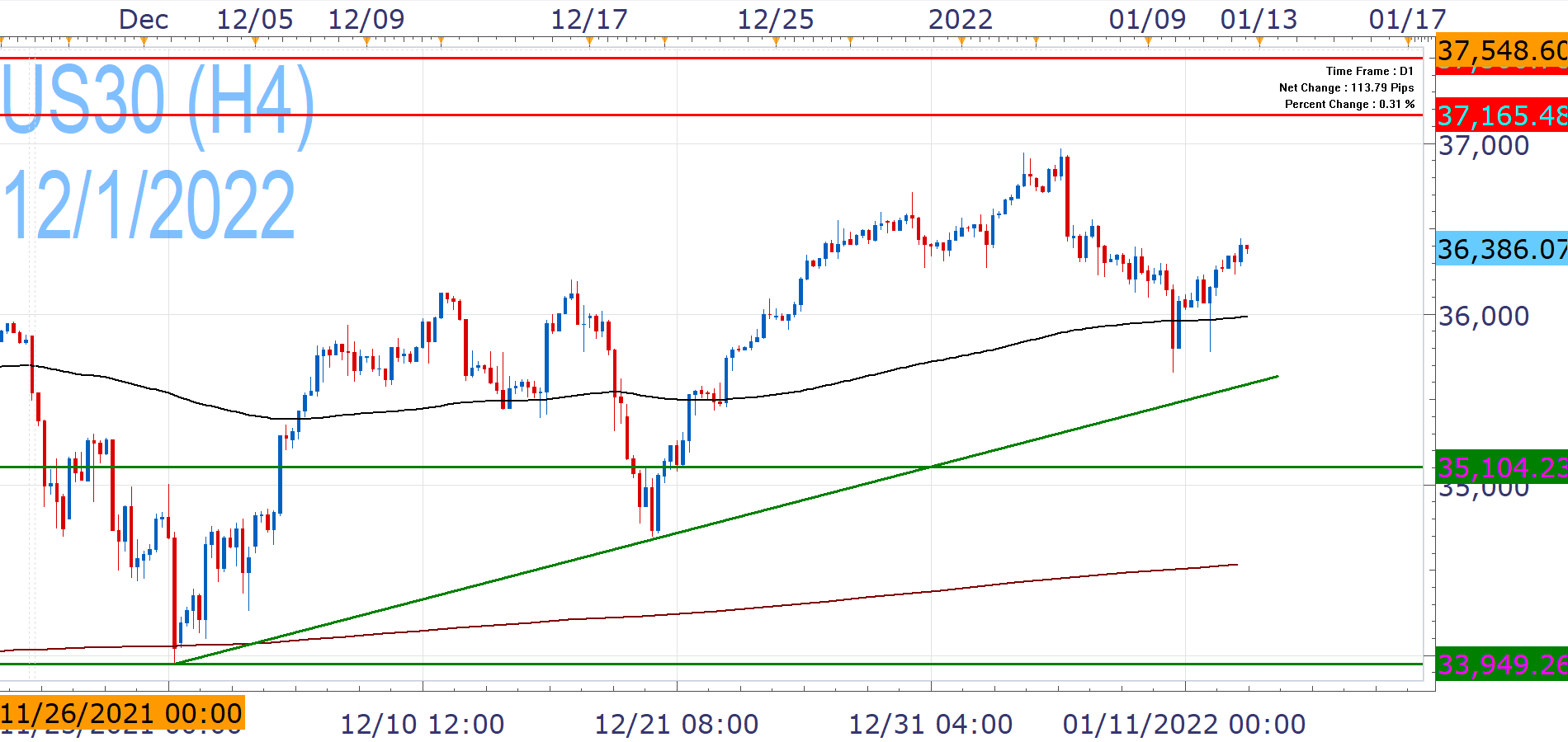 On the other, Inflation did surge and the central bank seems set for an aggressive normalization path, which may weigh on US30, while the rise seems a bit extended.