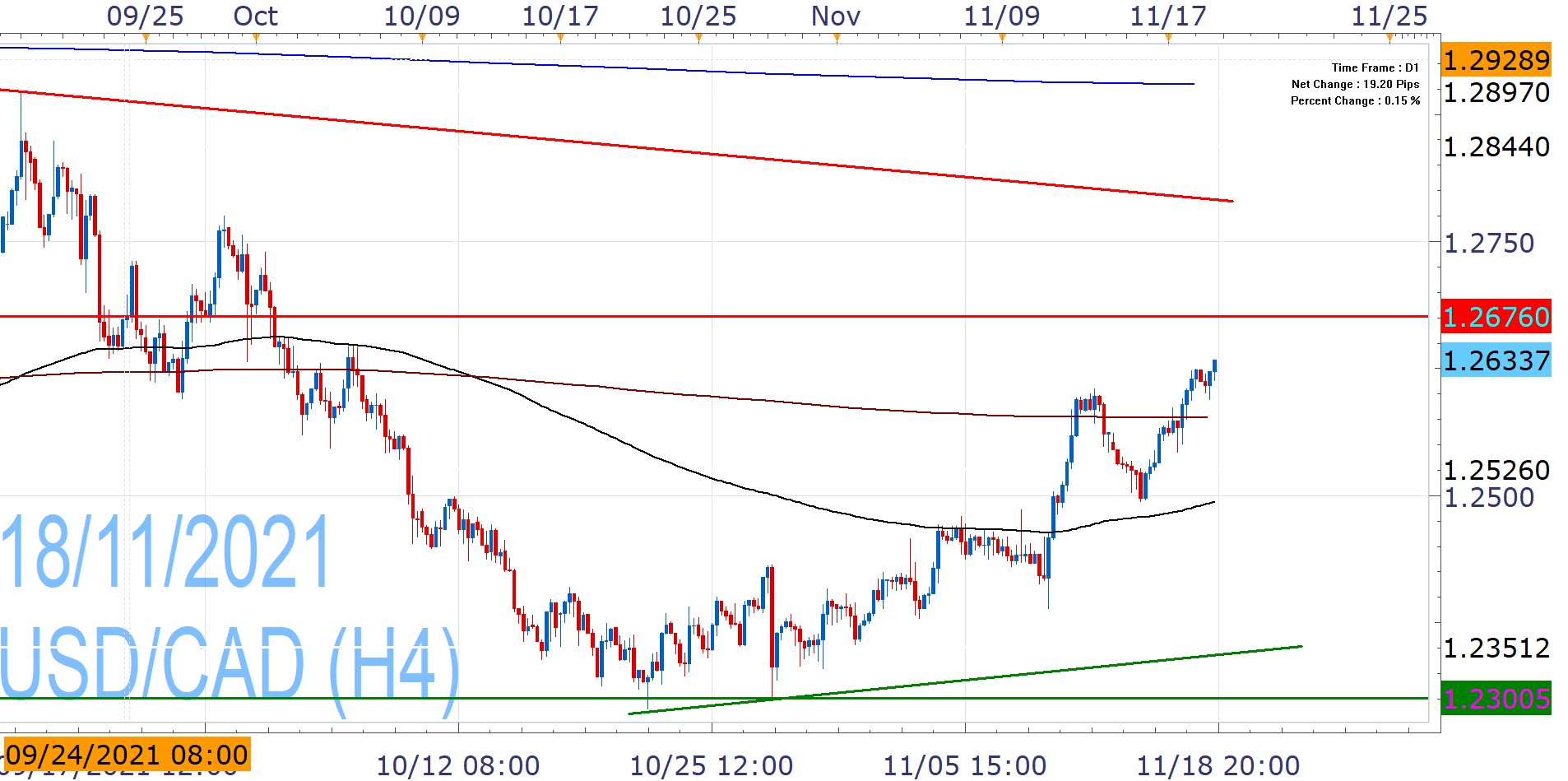 Big drop in oil price amidst talks and reports for coordinated release of strategic petroleum reserve by major oil producers had a detrimental effect, sending USD/CAD back above its 200Day EMA on Wednesday.