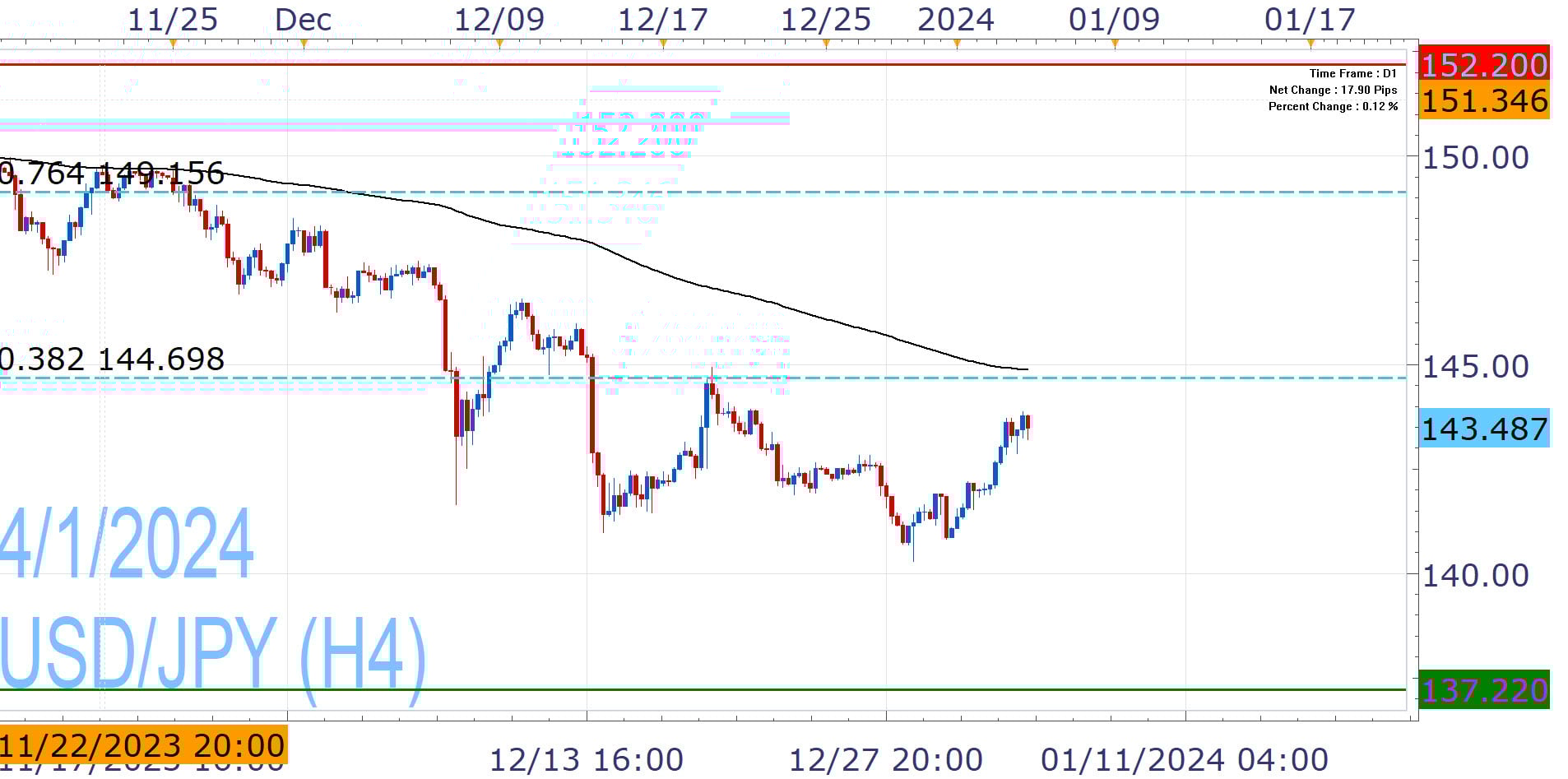 The Fed has touted the need for a restrictive stance and has not taken more tightening in play, but its projections point to a pivot and lower rates this year, even if swallower than market pricing. The Bank of Japan may have maintained its accommodative setting, but is moving towards normalization. This shift in policy dynamics has led the pair to tow straight losing months. Below the aforementioned crucial resistance, USD/JPY is in risk of fresh lows (140.24). The next leg of the move will likely be determined by Friday's US Jobs report.